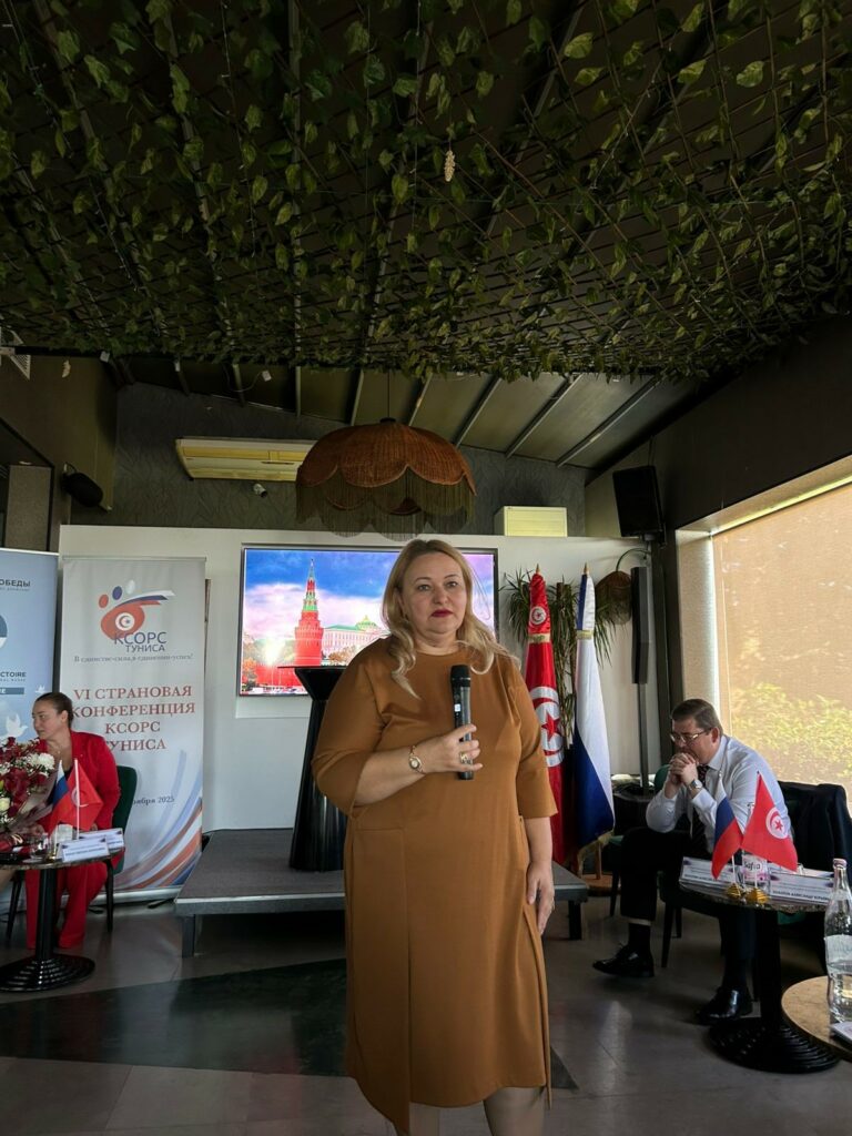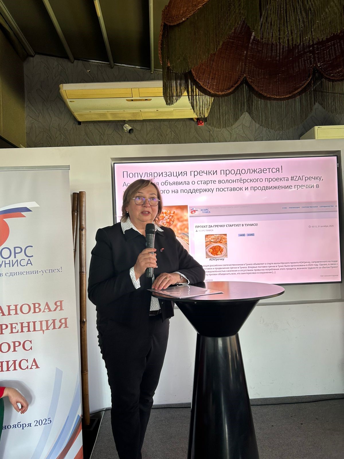 Заманова Лариса Анатольевна, заместитель председателя КСОРС и президент Ассоциации российских соотечественников в Тунисе, представила доклад о становлении, развитии и перспективах организации. Она отметила, что Ассоциация успешно прошла сложную процедуру перерегистрации и 2 мая 2025 года получила официальный юридический статус, что создало прочную основу для дальнейшей деятельности.