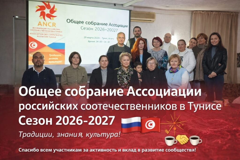 29 марта 2026 года, в городе Ариана состоялось Общее собрание Ассоциации российских соотечественников в Тунисе, открывающее новый сезон 2026–2027.